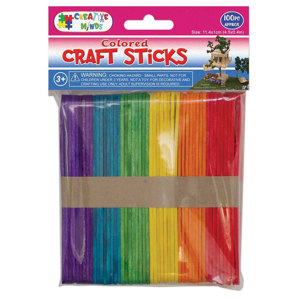 WOOD CRAFT STICKS (COL) 11.4CMx1CM 100PC